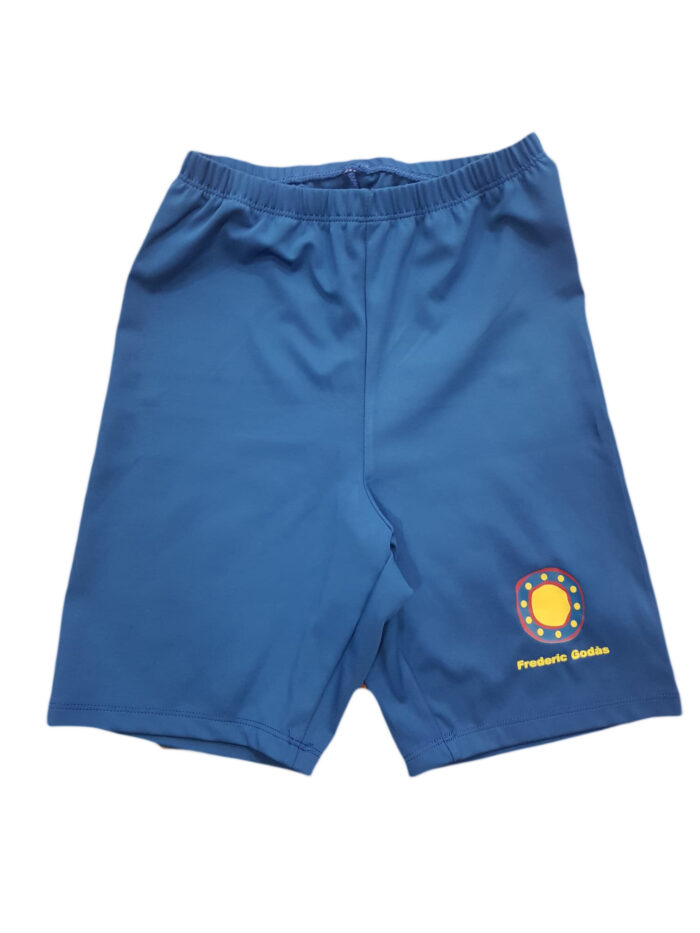 Malla curta licra confeccionada amb una estampació del logotip escolar.