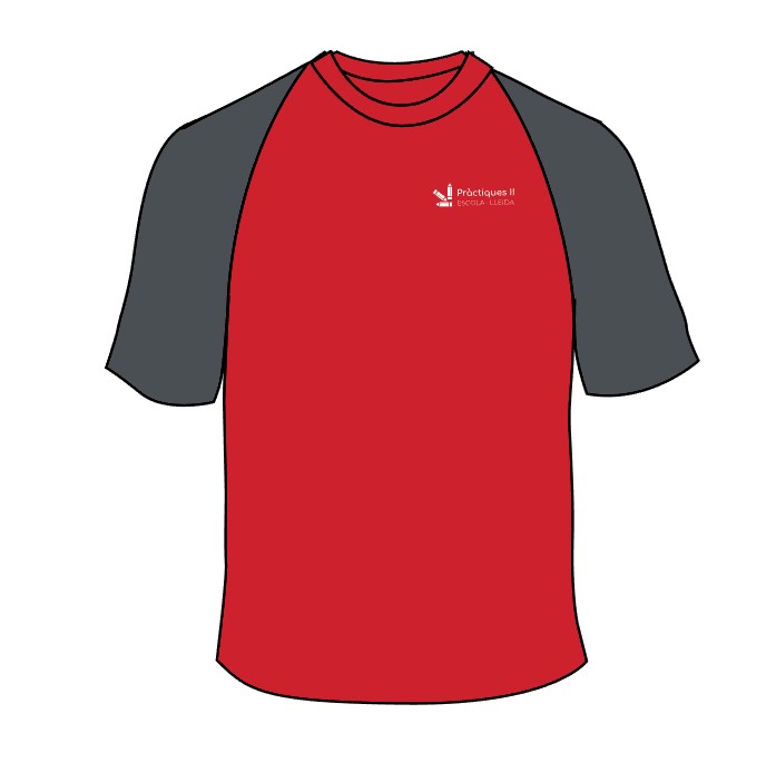 Samarreta confeccionada amb màniga ranglan curta amb estampació logotip Pràctiques II davant-darrere de color blanc.