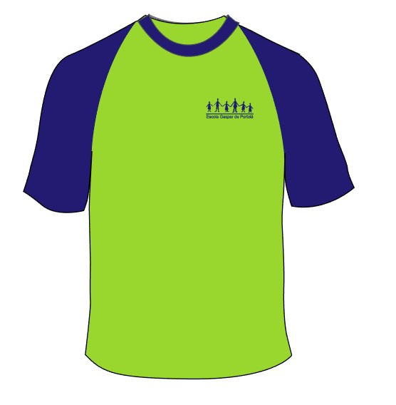 Samarreta màniga ranglan curta confeccionada amb una estampació amb tinta blava del logotip escolar-