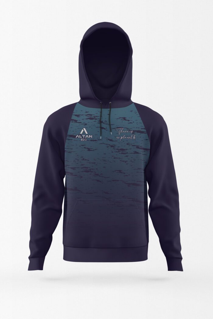 Sudadera técnica con manga “ranglan”. El tejido de este producto es reciclado a partir de botellas y basura plástica marina.